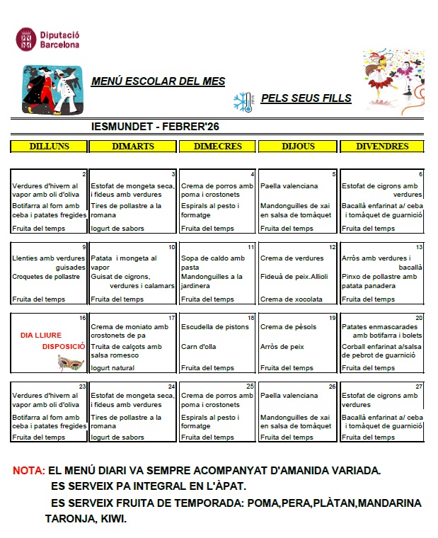 La comanda arribarà a l’Institut i s’avisarà des del centre perquè el/la vostre/a fill/a la reculli.